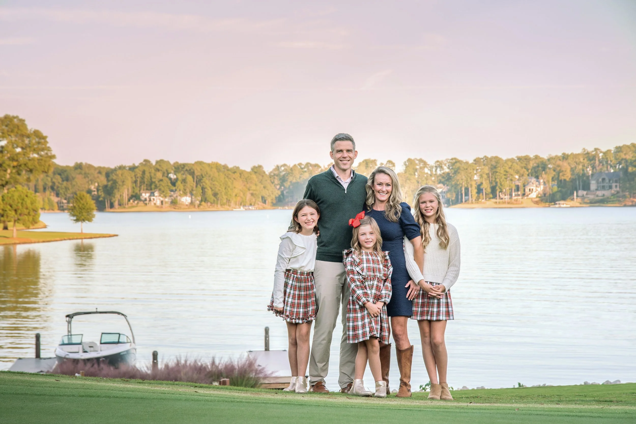 In their free time, the Myers family loves to get out on Lake Oconee. “Having grown up in Chattanooga near Lake Chickamauga, I always dreamed of living near a lake,” adds Lindsey. “Now, watersports reign supreme in this family, and Chris dutifully obliges us. On weekends warm enough for the water (with or without a wetsuit), you can usually find me slalom skiing in some capacity, whether with a friend I met at a local ‘Ladies on the Lake’ event several years ago or with the whole family. I also enjoy wake surfing, and I am always working on new tricks! Over the past few years, I’ve somehow convinced all three girls to love watersports as well! Kate and Ellie both learned to wakeboard, wake surf, waterski, and have even learned to slalom ski with a deep-water start. After years of watching her big sisters put on a show, Emma Grace learned to wakeboard this past summer as well, and there’s no stopping her now! I truly cherish the opportunity to raise kids on the water - there are so many wonderful life lessons that are implicit in learning to do Watersports. There’s inherent fear, the process of overcoming the fear, successes and celebrations, inevitable failure (but no big deal, just try again!), and always something new to try or to perfect. And you get all of this while also spending time with family and friends and having fun on the water. I love teaching both my friends and the kids’ friends how to do various watersports, and I hope to pursue that in a more formal capacity in the coming years.”